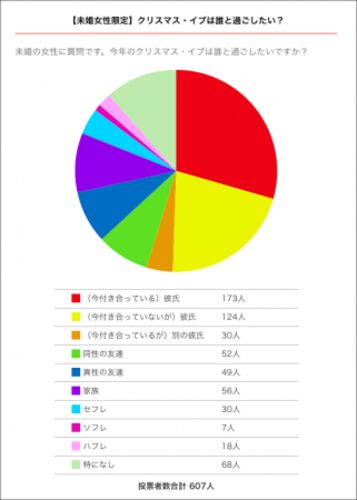 今年も、クリスマスの季節がやってきた。 世の女性たちは、誰とクリスマスを過ごす予定なのだろうか。 愛カツ(aikatu.jp/)が昨年実施した「クリスマスは誰と過ごしたいか」調査結果によると、 以下のような回答となっている。 1位:(今付き合っている)彼…